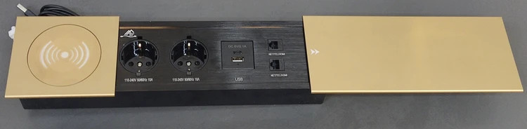 دارای درب کشویی الومینیومی می باشد که در مواقع عدم نیاز کشیده شده وسوکت ها و پورت ها را مخفی میکند